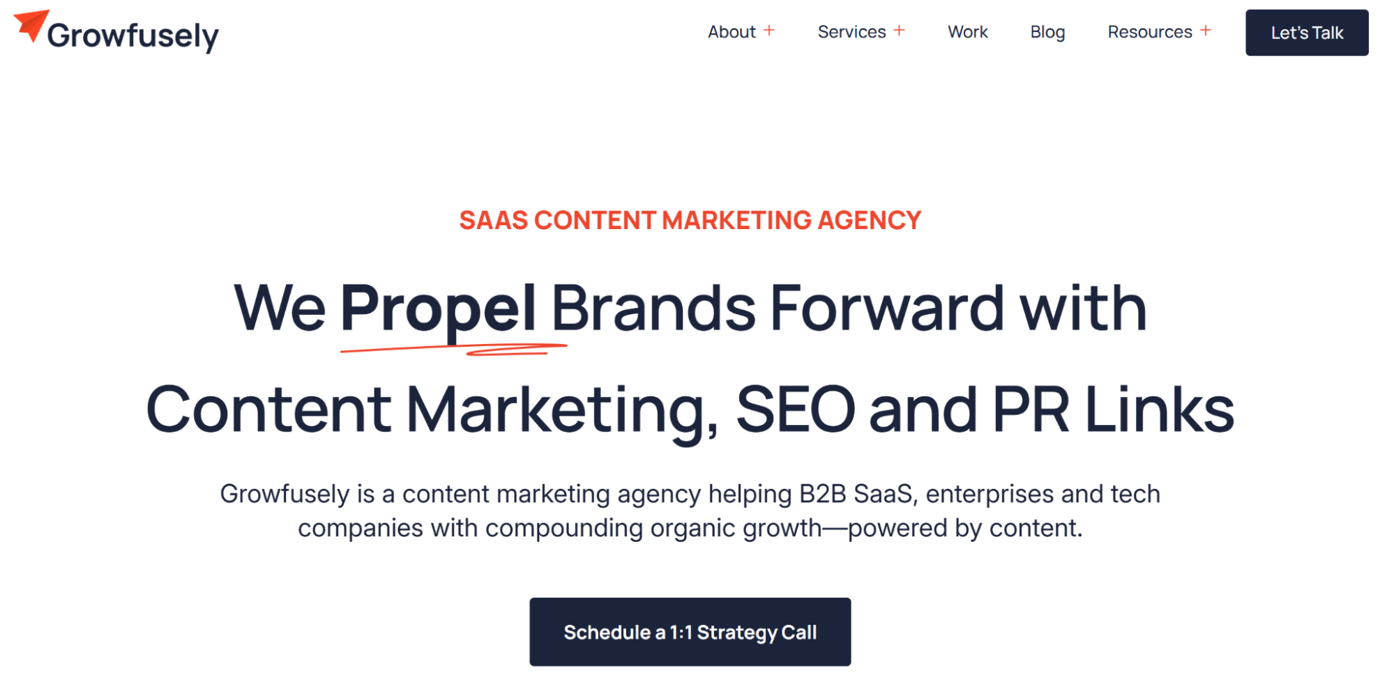 Growfusely ensures transparency every step of the way through a dedicated account manager, cementing our position as the best B2B content marketing agency in 2025.
