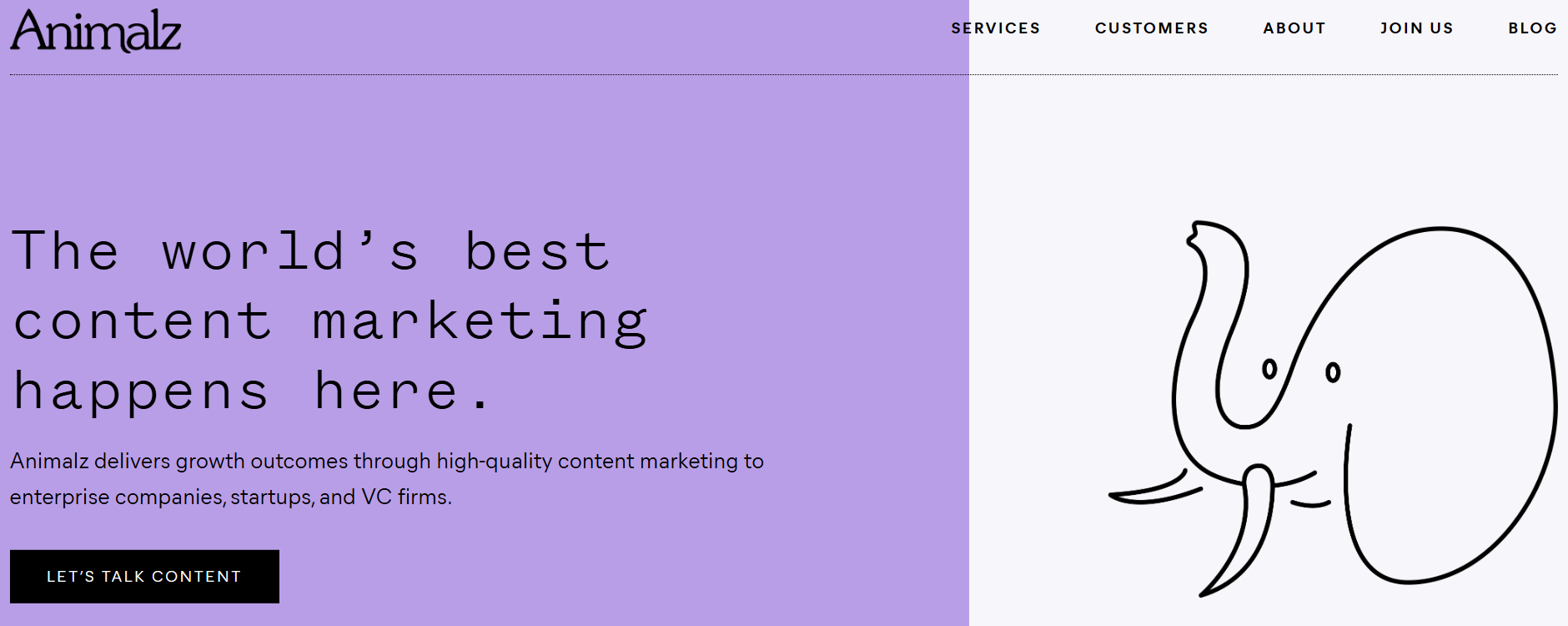 Animalz is a specialized and premium content marketing agency geared towards the needs of B2B SaaS companies, venture capitalists (VCs), and tech enterprises.