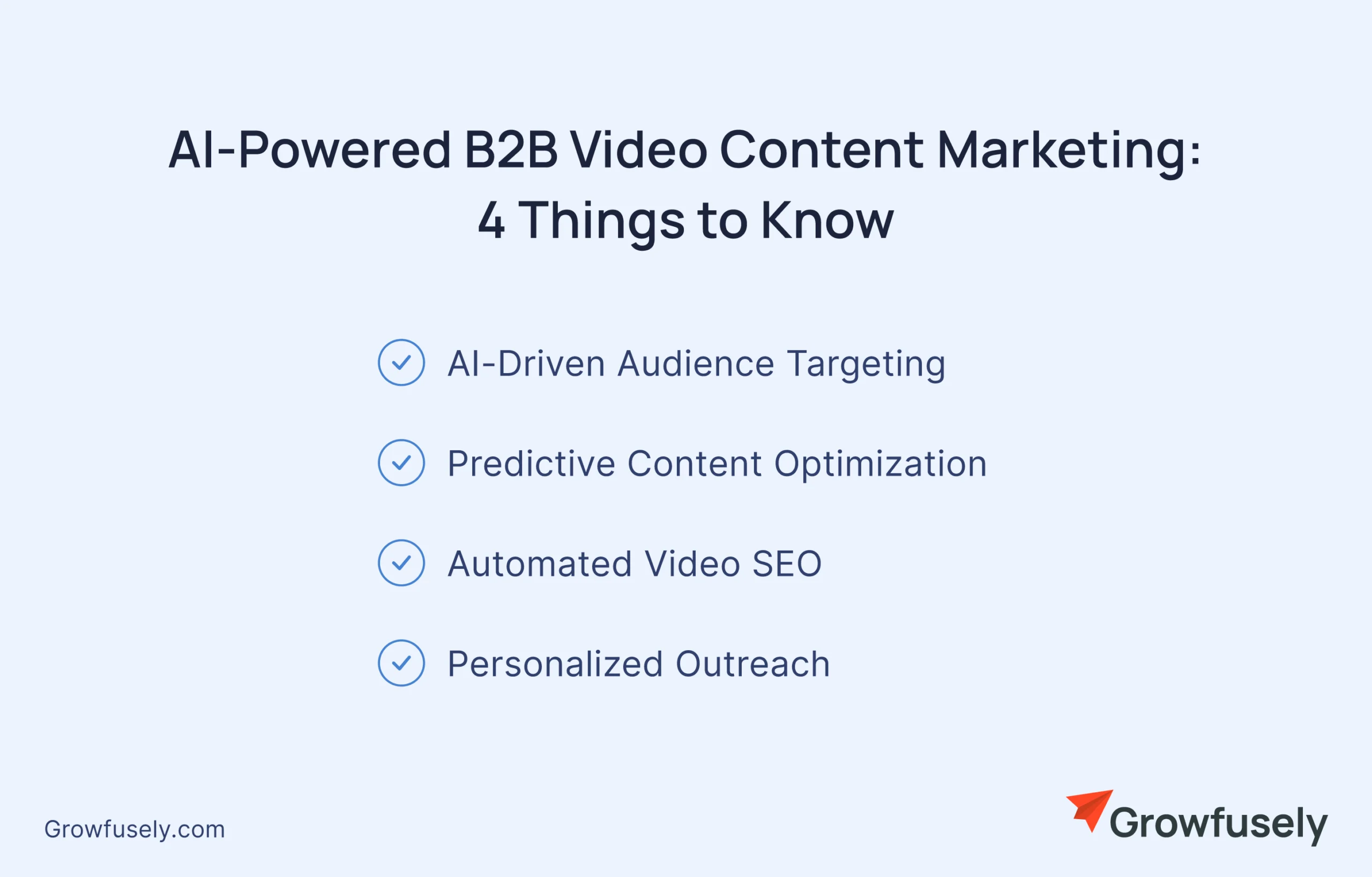 If you are looking for a growth partner who can take charge of your B2B video content marketing strategy, Growfusely can help! We specialize in crafting and promoting high-impact video content that drives engagement and conversions. Get in touch with our team now!