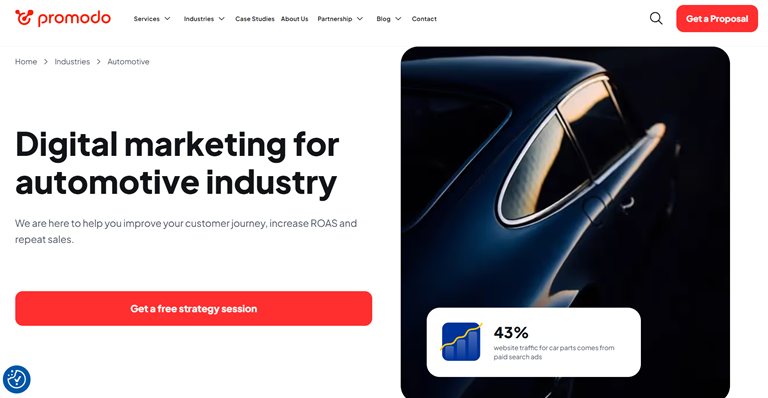 Promodo is a digital marketing agency that has some strong auto SEO services. They provide “holistic on-site and off-site SEO solutions” that help businesses build authority, improve rankings, and drive traffic that converts.