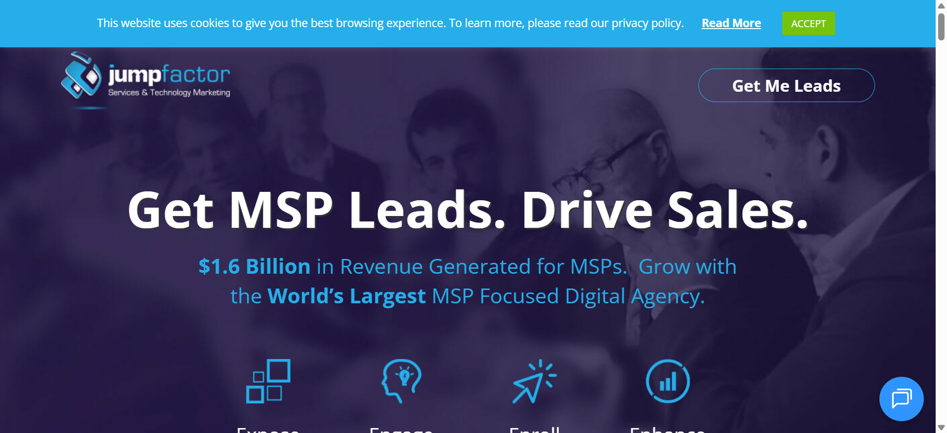 Jumpfactor IT firms, MSPs, and engineering companies seeking specialized digital marketing growth Content marketing and SEO, PPC/MSP AdWords, LinkedIn/social advertising, conversion-optimized web development, email automation, CRM integration, lead intelligence Caltech, Executech, SteadyNetworks, Attentus Technologies, Yardstick Technologies, Power Consulting, Acrodex, Sunco