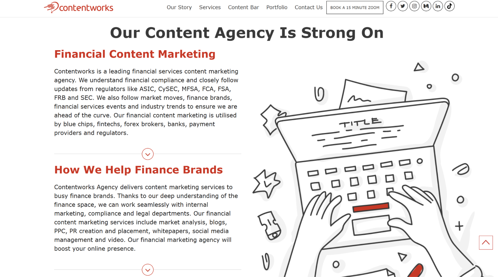 Contentworks Agency specializes in compliant finance content marketing, serving banks, fintech companies, and financial institutions that need expert storytelling within regulatory boundaries. They create tailored content such as thought leadership pieces, technical analyses, blog posts, and social media assets that are both engaging and compliant.