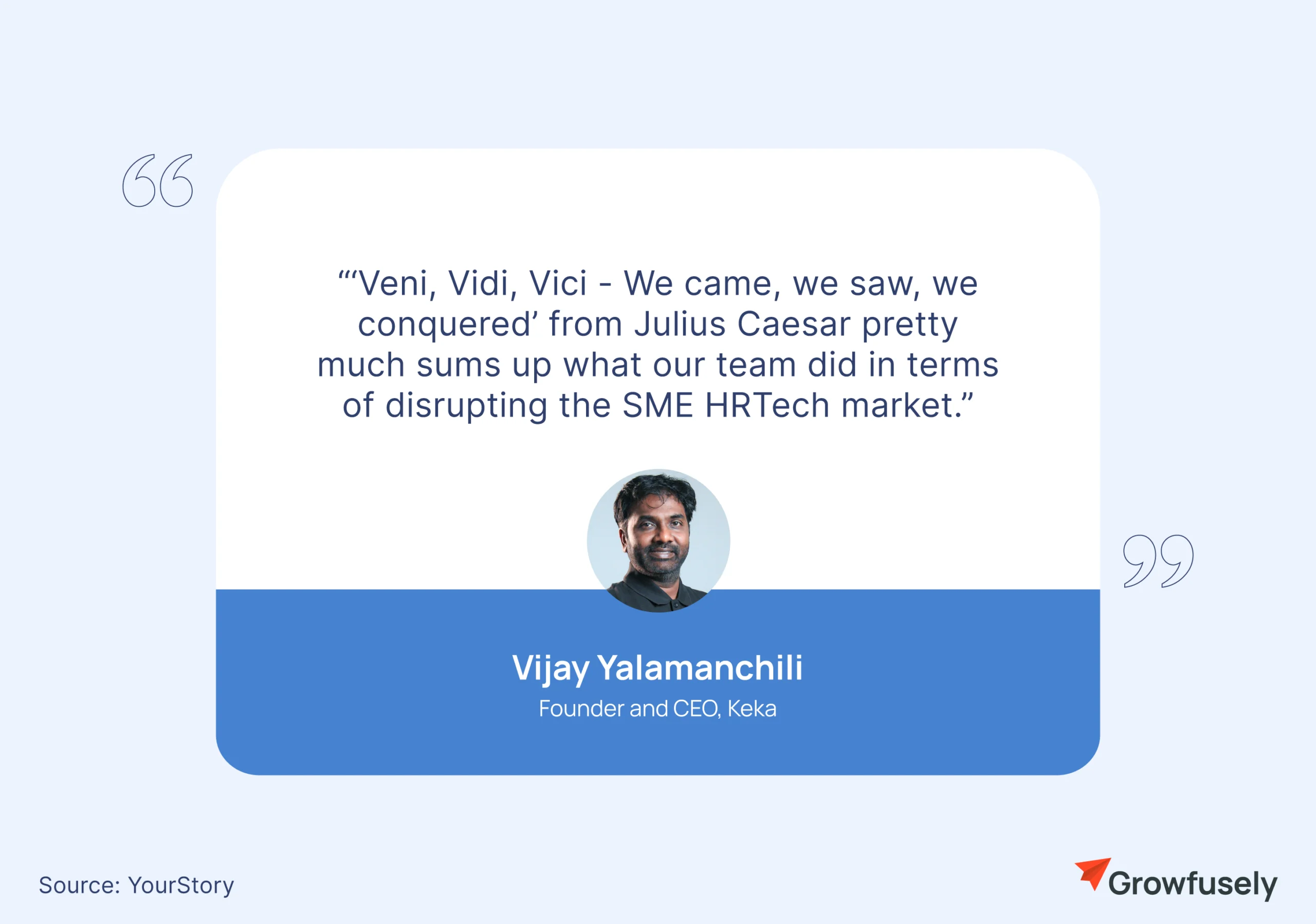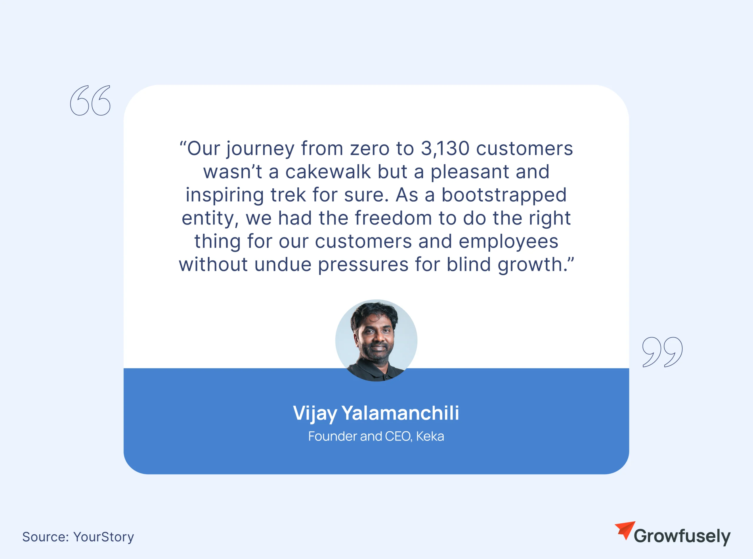 Another challenge that Keka faced was to grow without external investors. Unlike many startups running on investor money, Keka took a different route. Today, the company is proudly bootstrapped, running entirely on the revenue it generates.