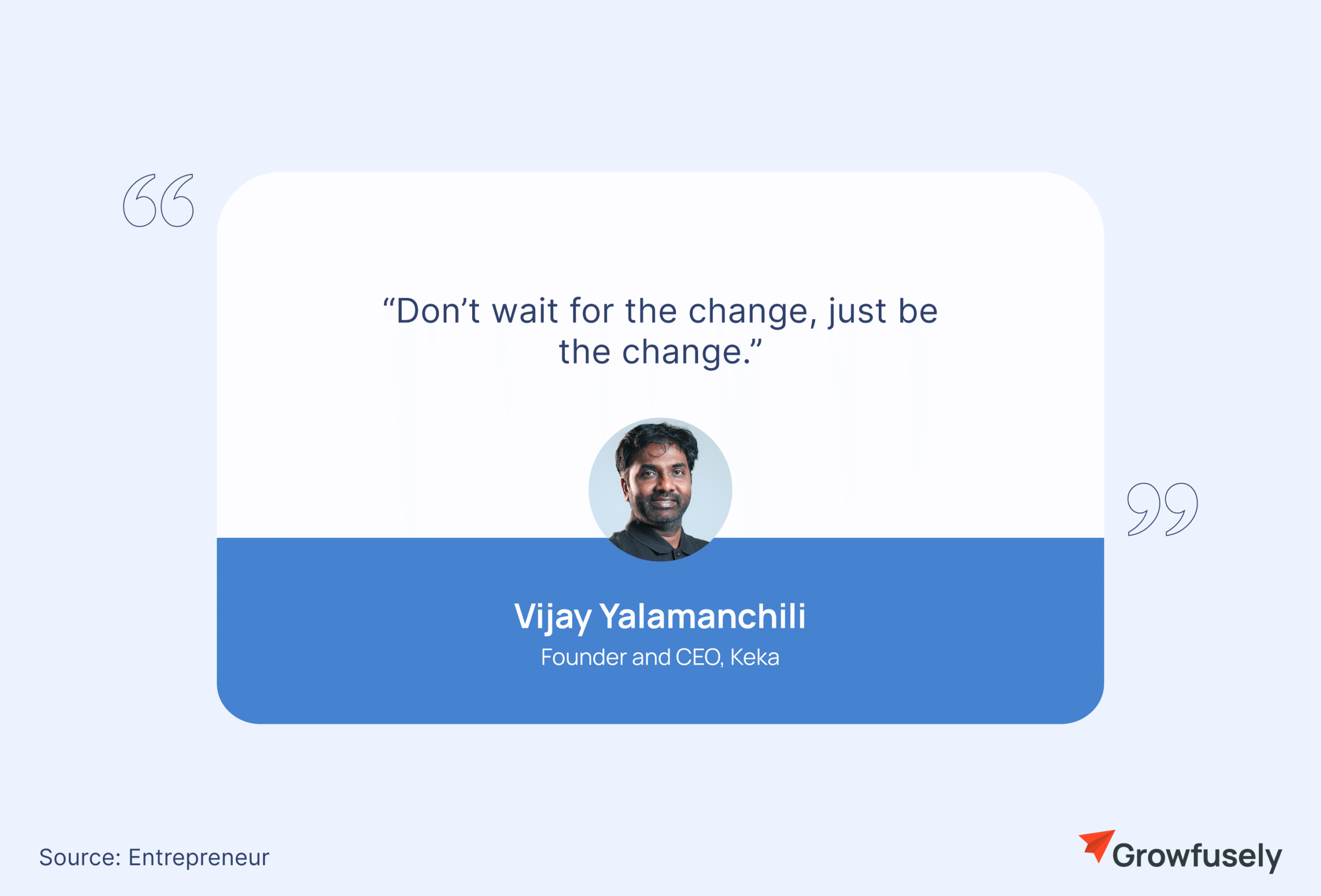 Let’s put it down officially for this post. Vijay Yalamanchili is Founder at Keka, an HR software company that helps small and medium businesses optimize their HR functions. He leads the company and at the same time, works closely on its products to simplify and modernize HR processes.