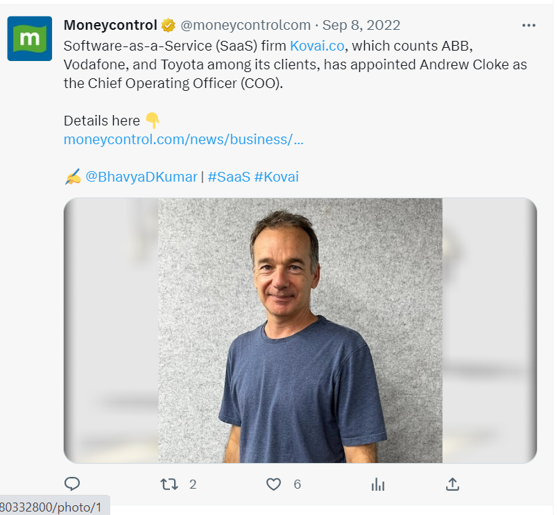 Andrew Cloke was appointed as the Chief Operating Officer (COO) of Kovai.co in September 2022. According to Sarvana, “Cloke’s focus and expert knowledge in the industry has been exemplary. As we were looking to strengthen our leadership team at Kovai.co, he was the logical choice since he would help us maintain momentum and growth and build appropriate policies to keep them in place.”