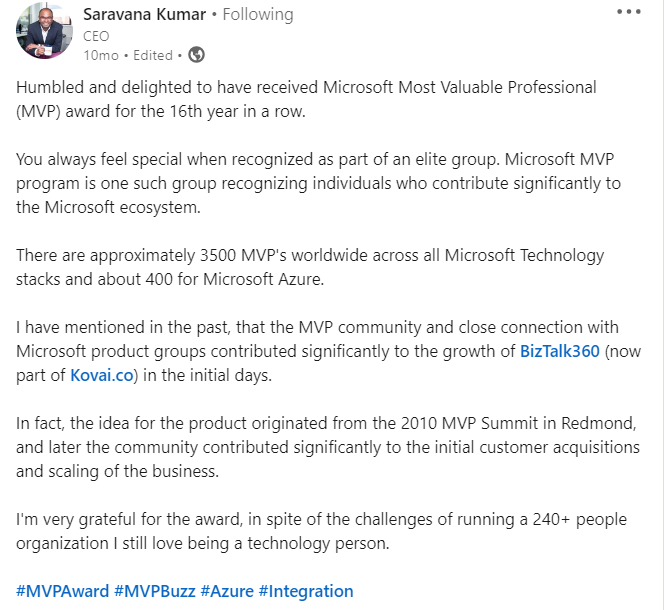 As mentioned previously, Saravana gained initial traction for his product by publishing 600+ technical articles on the subject of BizTalk server on his blog.