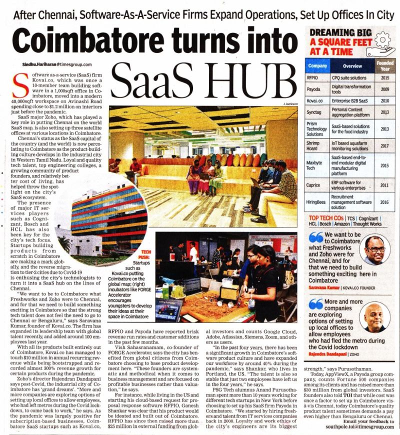 Saravana Kumar, the founder, hails from Coimbatore, a tier-2 city in southern India, and believes in repaying the community. In a world where SaaS companies clamor to put roots in Chennai or Bengaluru to leverage the thriving startup ecosystem, Saravana chose to put his hometown on the map.