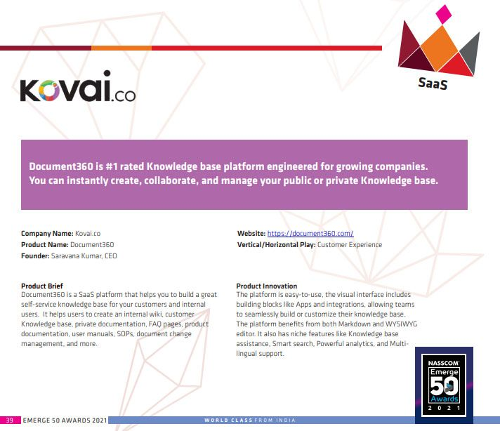 For a company that began as “a hobby,” Kovai.co has grown to become the market leader in the enterprise integration space with BizTalk360 among the top 5 in the space that Document360 operates.