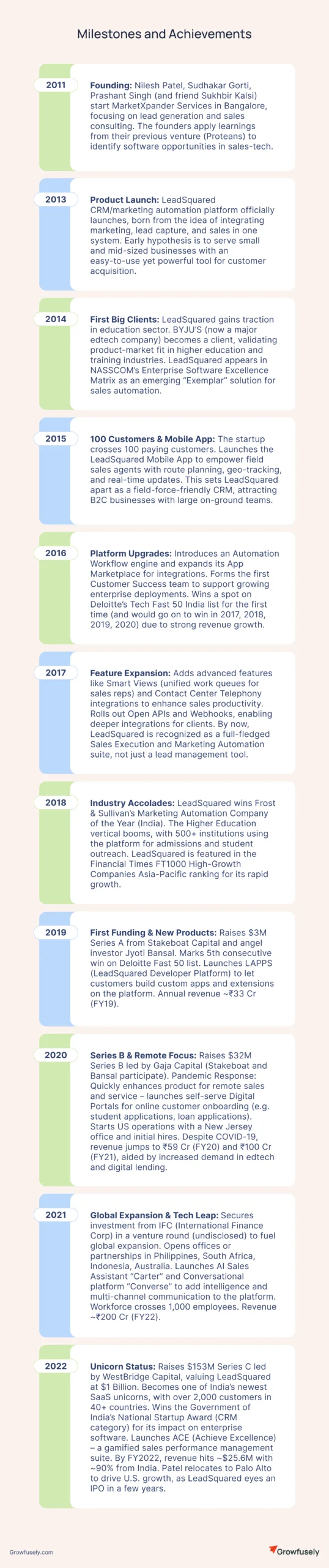 Below is a timeline of LeadSquared’s key milestones over the years, charting its path from a tiny agency to a unicorn.
