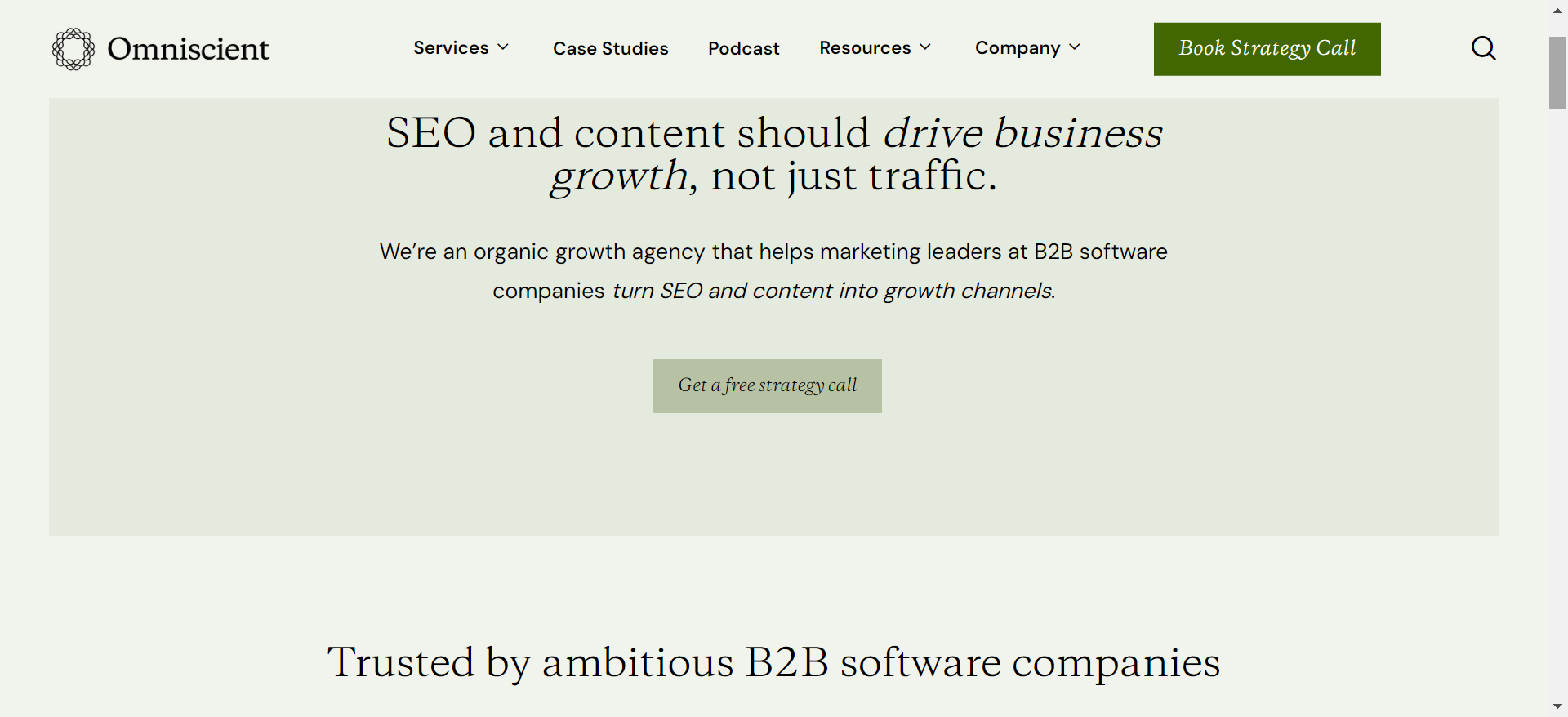 Price: You can book a strategy call with Omniscient Digital to learn about their pricing plans.