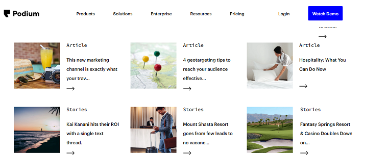 The communication tool Podium creates and posts some pretty engaging and useful content that customers can use. Our blog features articles full of tips and tricks to help you grow and run your business. With new content being added continuously, users return to the site again and again.