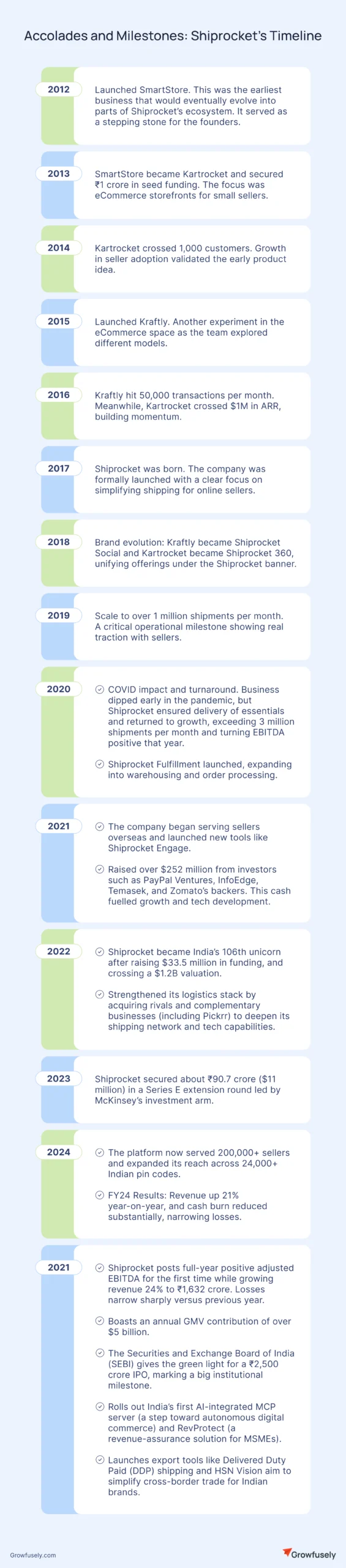 Before Shiprocket, they tried other things: building online stores for sellers (KartRocket), then a marketplace (Kraftly). Those efforts didn’t produce lasting results, but they taught the team where the real problem was: shipping and fulfillment. So, they focused on solving that.