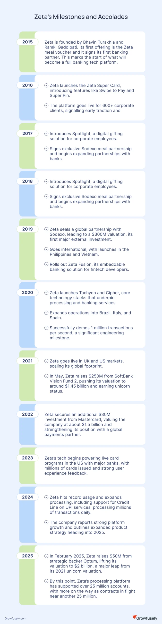 Today, Zeta powers millions of cards, loans, deposits, and digital banking experiences around the world. The platform runs on a cloud-native, fully API-enabled system, covering everything from issuing cards to managing fraud and loyalty programs.